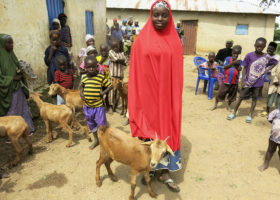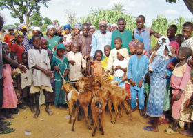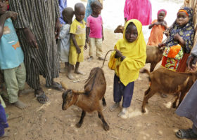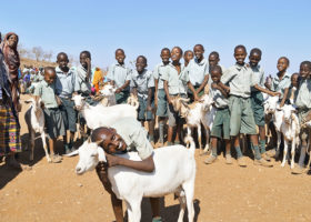 In the goat project of Call of Hope, a female goat is given to a Muslim or Christian family. When this goat gives birth to kids, they can be sold in the market. The proceeds can be used to pay school fees and school materials that the children urgently need for their school education.
