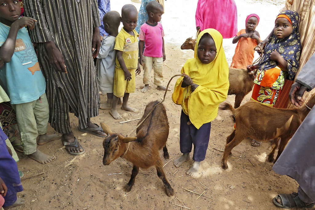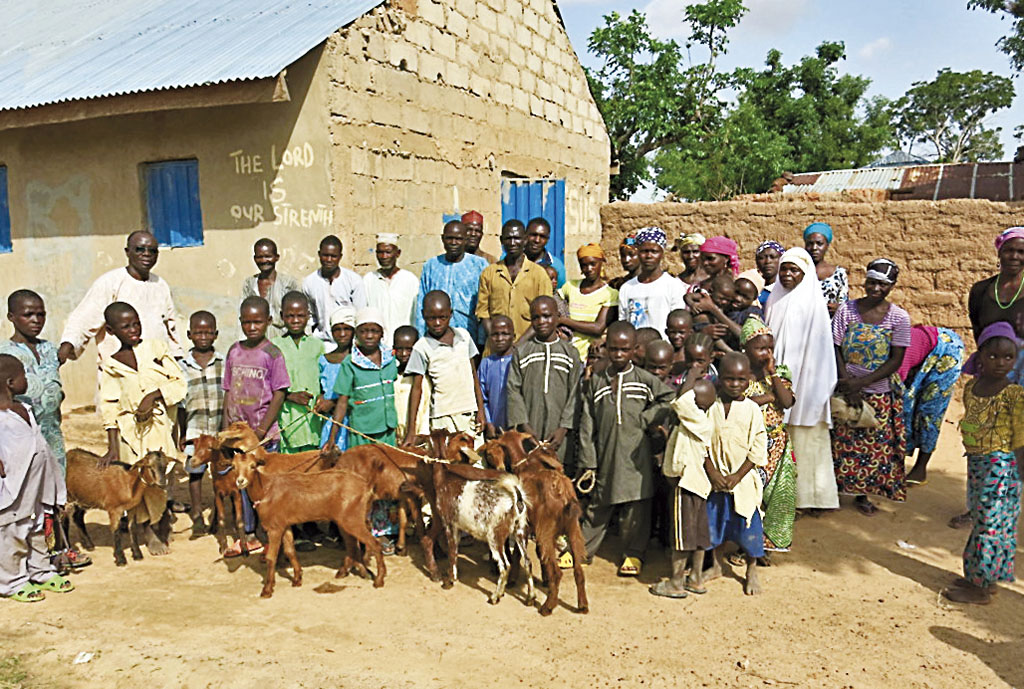 In the goat project of Call of Hope, a female goat is given to a Muslim or Christian family. When this goat gives birth to kids, they can be sold in the market. The proceeds can be used to pay school fees and school materials that the children urgently need for their school education.